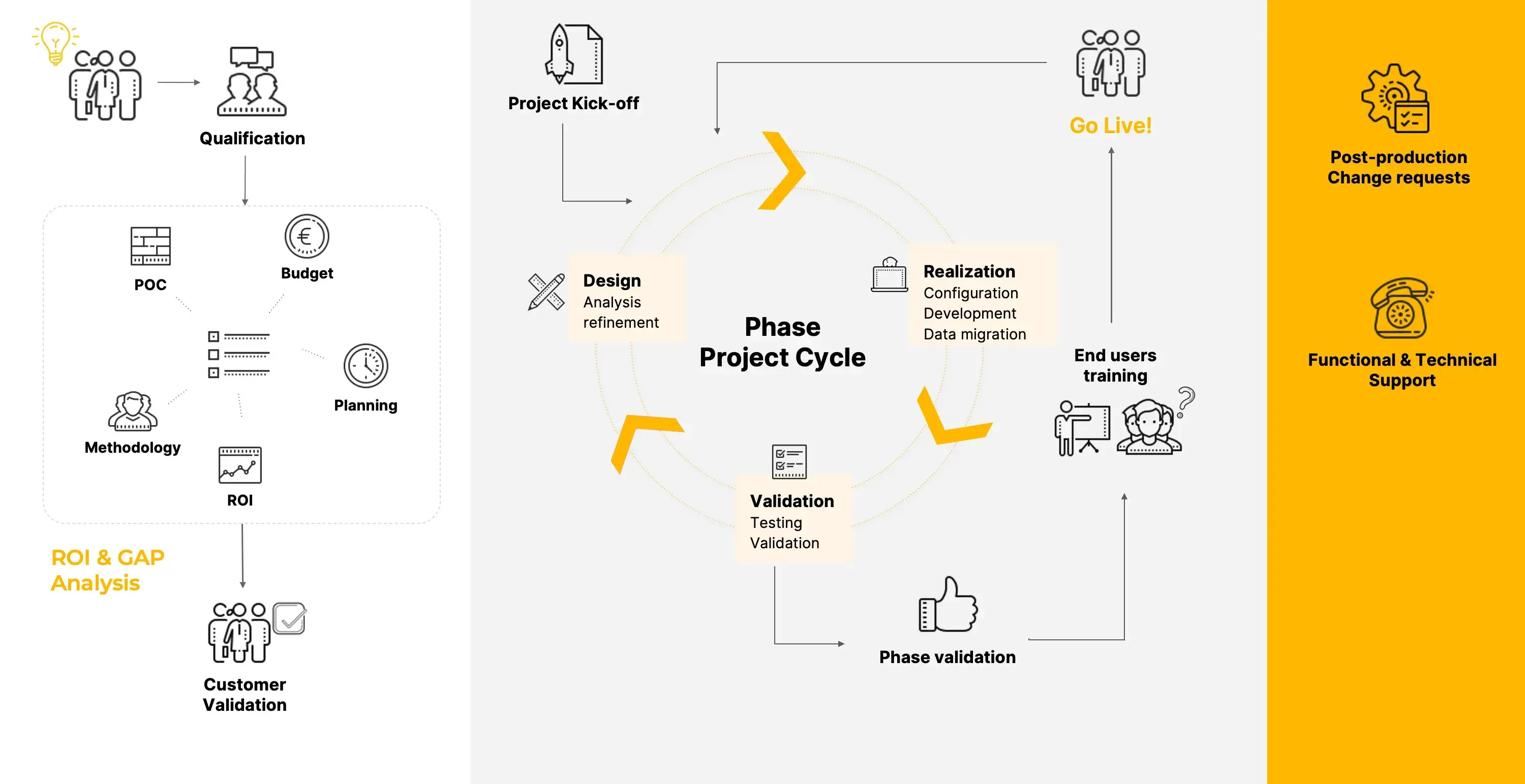 Tổ chức của bạn có thể lựa chọn giữa việc triển khai theo từng giai đoạn (phased rollout) hoặc triển khai toàn diện (full deployment). Trong phương pháp phased rollout, hệ thống ERP được giới thiệu theo từng giai đoạn cho các phòng ban hoặc chức năng cụ thể trước khi triển khai cho toàn hệ thống. Trong khi đó, full deployment là triển khai hệ thống ERP đồng loạt cho toàn tổ chức cùng một lúc.