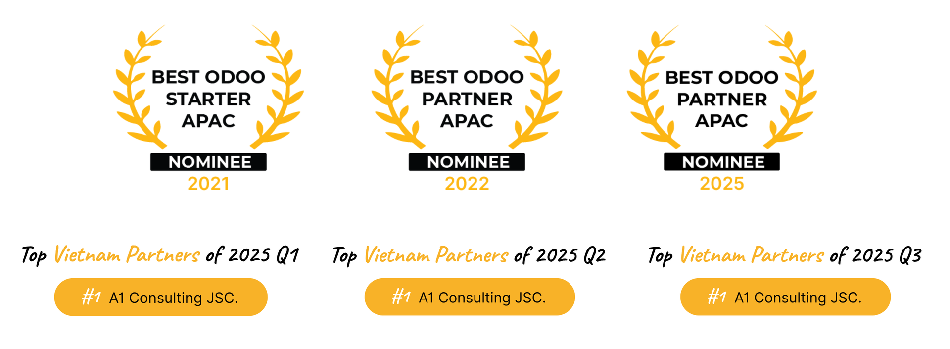 Không chỉ ghi dấu ấn tại thị trường nội địa, A1 Consulting Vietnam còn được đề cử Đối tác xuất sắc nhất APAC tại Odoo Awards 2025, đồng thời dẫn đầu Top Vietnam Partners of 2025 trong ba quý liên tiếp Q1, Q2 và Q3. Những thành tựu này phản ánh năng lực triển khai vượt trội, hiệu suất tăng trưởng ổn định và mức độ tin tưởng cao từ cộng đồng doanh nghiệp.