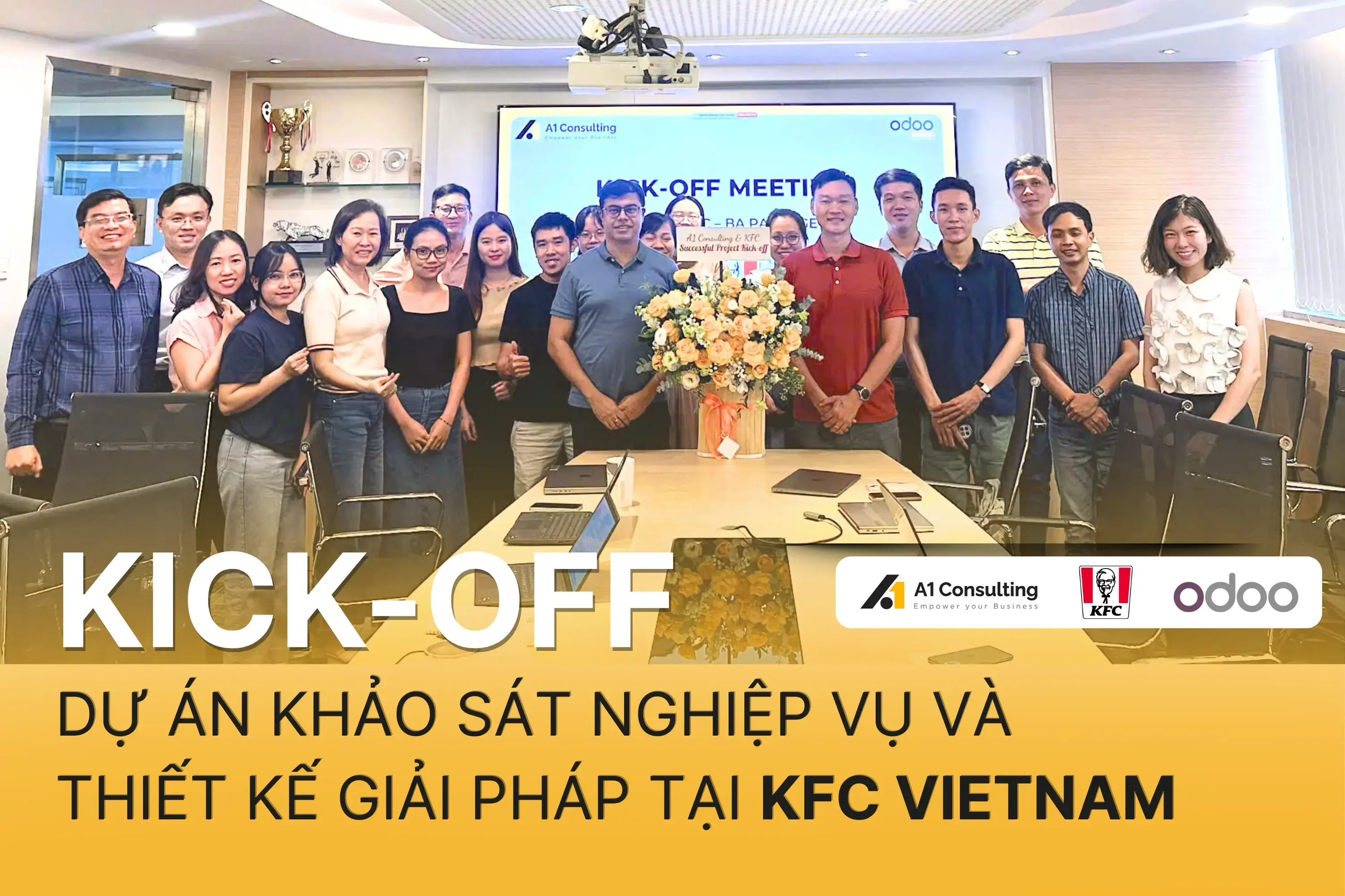 TP. Hồ Chí Minh, ngày 18/12/2025 – A1 Consulting và KFC Vietnam đã chính thức khởi động Dự án: Khảo sát nghiệp vụ và thiết kế giải pháp trên nền tảng Odoo trong Buổi lễ kick-off được tổ chức tại văn phòng KFC Vietnam.