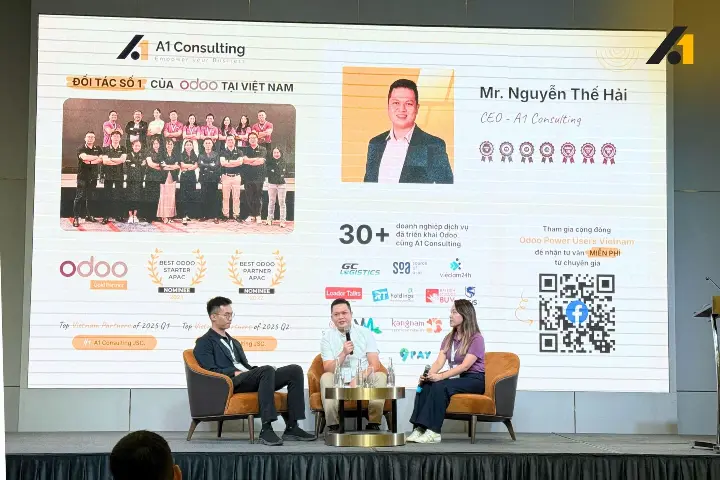 Đây là hoạt động mà A1 Consulting luôn duy trì trong các sự kiện của Odoo, với tinh thần đồng hành thật – hỗ trợ thật để doanh nghiệp Việt có thể ứng dụng ERP thành công.